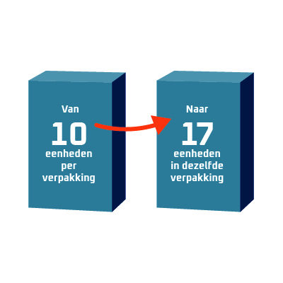 • 70% extra product per verpakking, waardoor flink wordt bespaard op verpakkingskosten